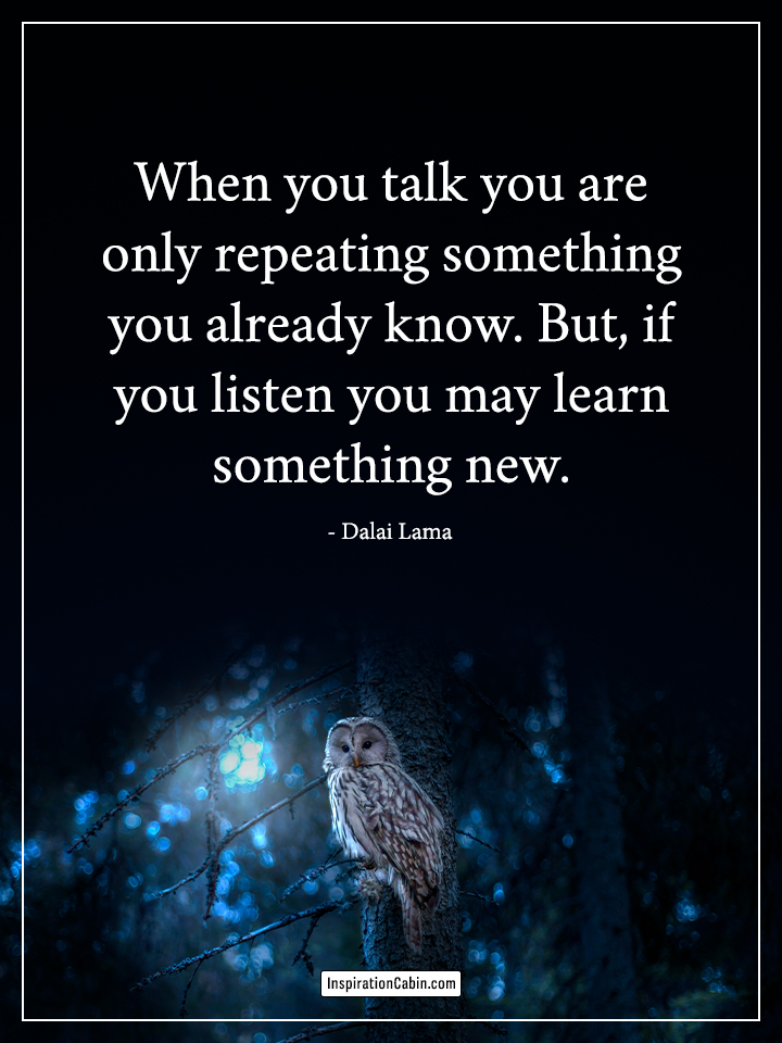 When you talk you are only repeating something you already know. But, if you listen you may learn something new.