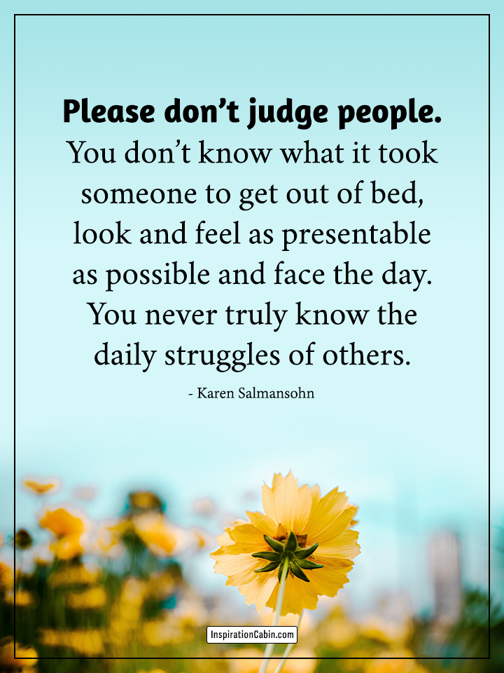Please don’t judge people. You don’t know what it took someone to get out of bed, look and feel as presentable as possible and face the day. You never truly know the daily struggles of others.