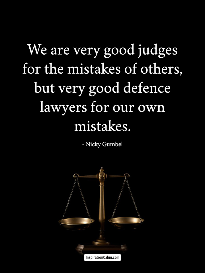 We are very good judges for the mistakes of others, but very good defence lawyers for our own mistakes.