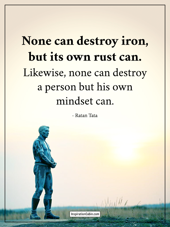 None can destroy iron, but its own rust can. Likewise, none can destroy a person but his own mindset can.