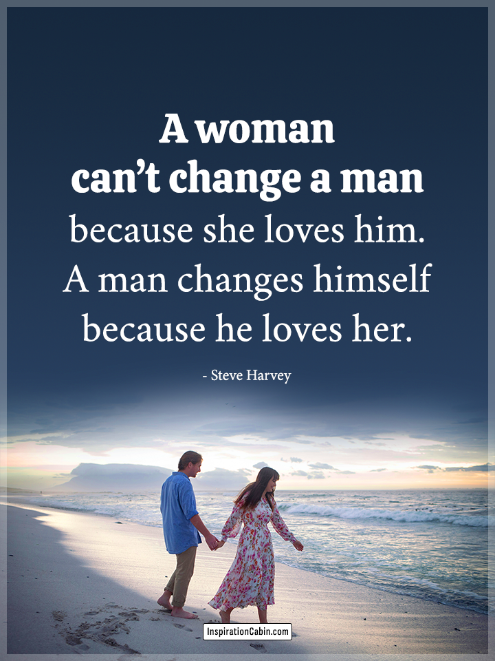 A woman can’t change a man because she loves him. A man changes himself because he loves her.