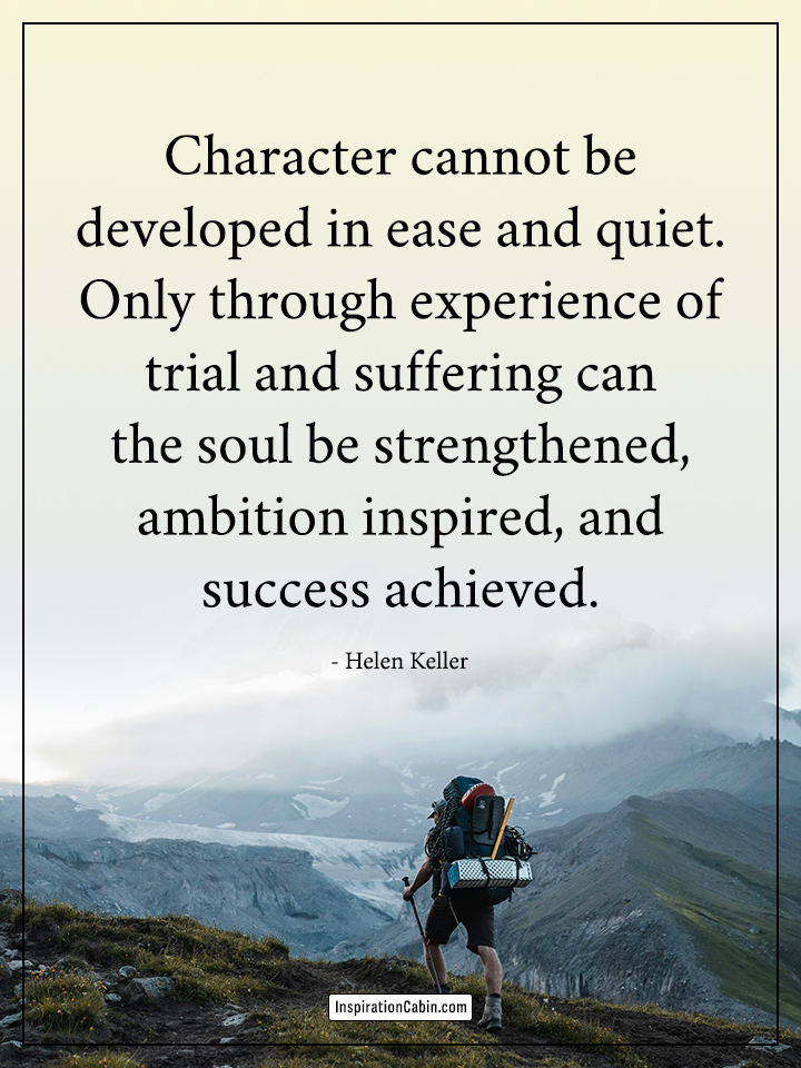 Character cannot be developed in ease and quiet. Only through experience of trial and suffering can the soul be strengthened, ambition inspired, and success achieved.