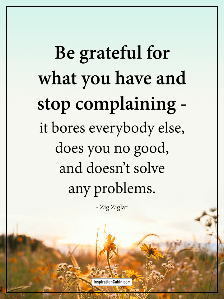Be grateful for what you have and stop complaining – it bores everybody else, does you no good, and doesn’t solve any problems.