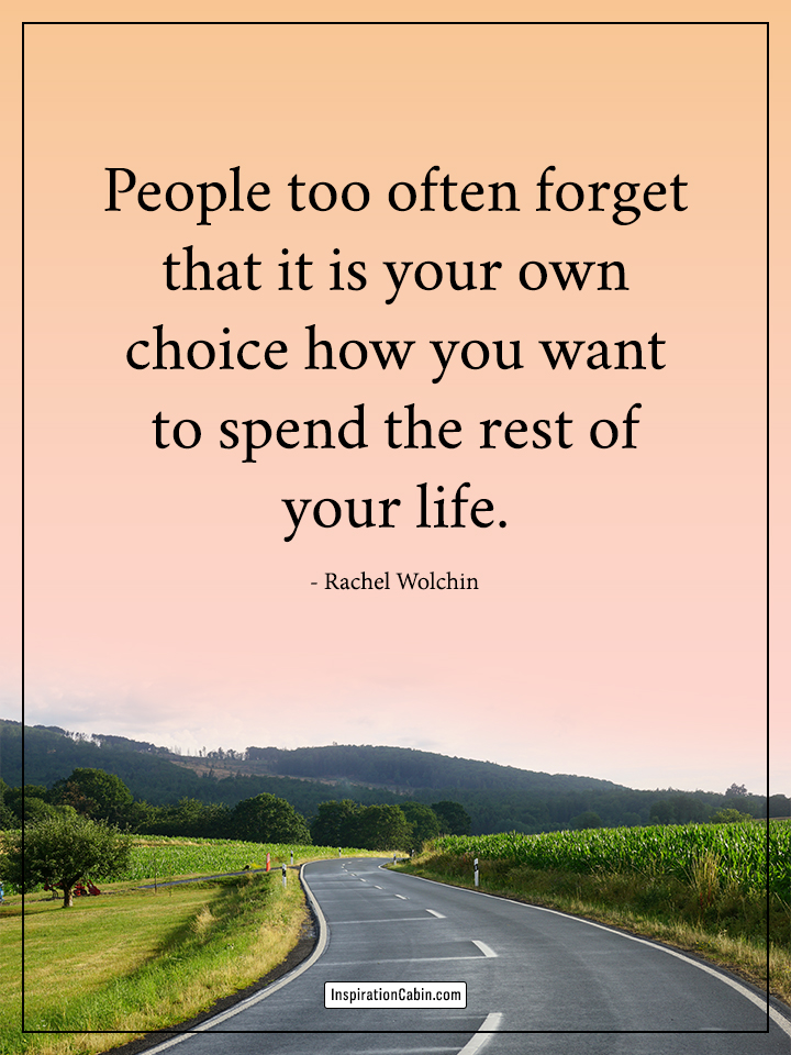 People too often forget that it is your own choice how you want to spend the rest of your life.