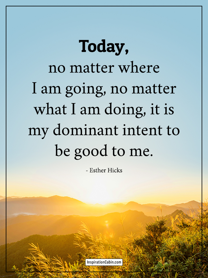 Today, no matter where I am going, no matter what I am doing, it is my dominant intent to be good to me.