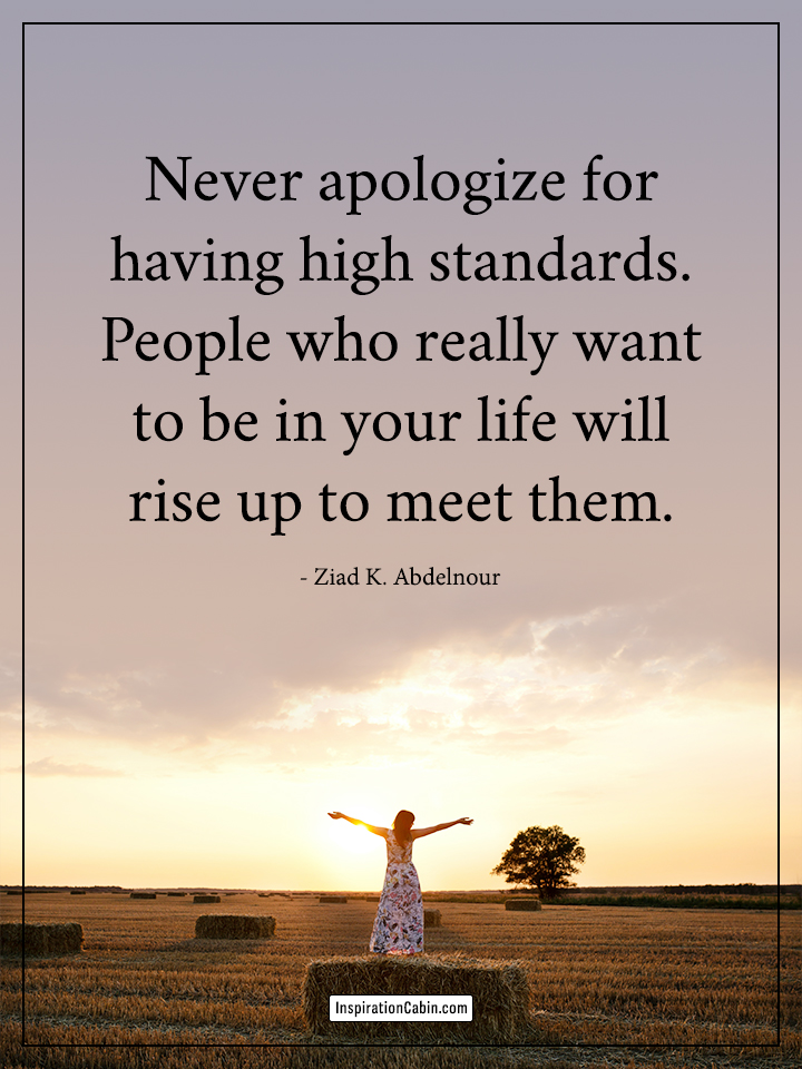 Never apologize for having high standards. People who really want to be in your life will rise up to meet them.