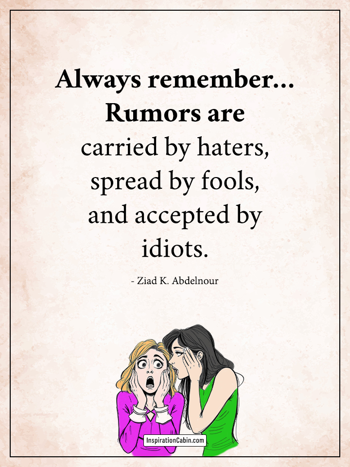 Always remember… Rumors are carried by haters, spread by fools, and accepted by idiots.