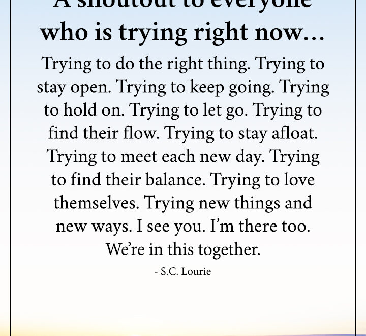 A shoutout to everyone who is trying right now… Trying to do the right thing. Trying to stay open. Trying