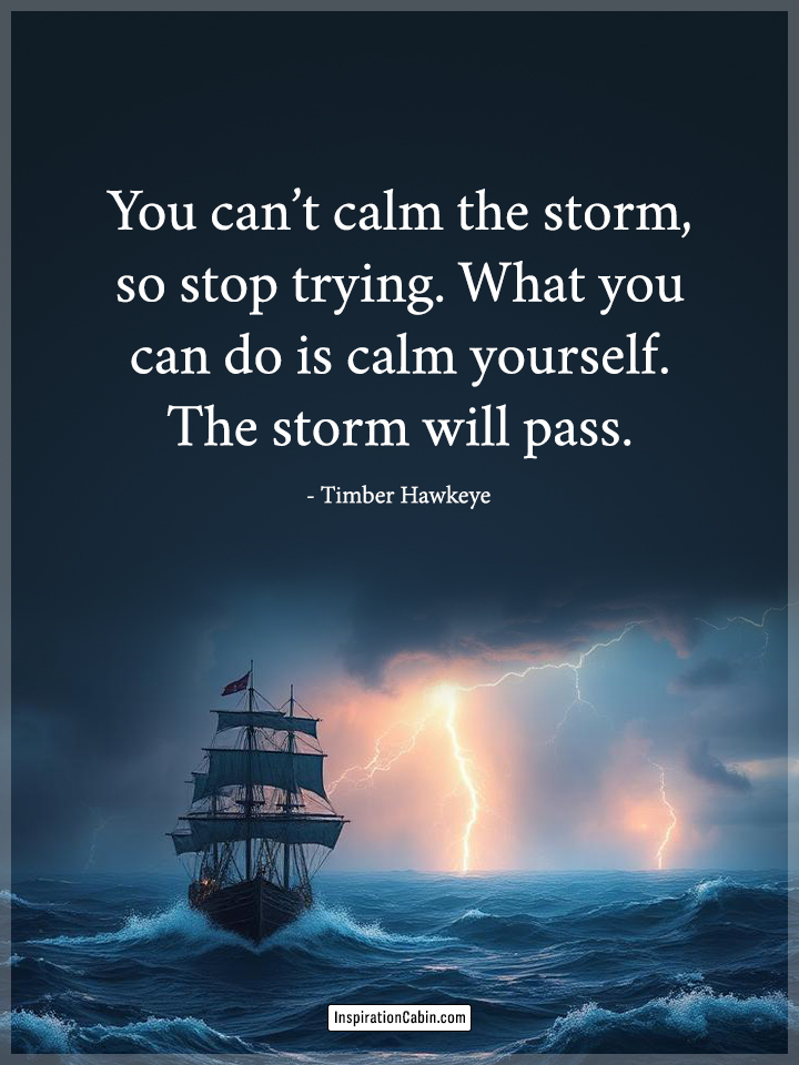 You can’t calm the storm, so stop trying. What you can do is calm yourself. The storm will pass.
