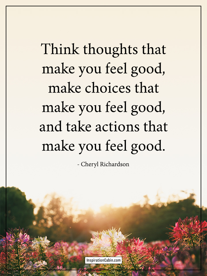 Think thoughts that make you feel good, make choices that make you feel good, and take actions that make you feel good.