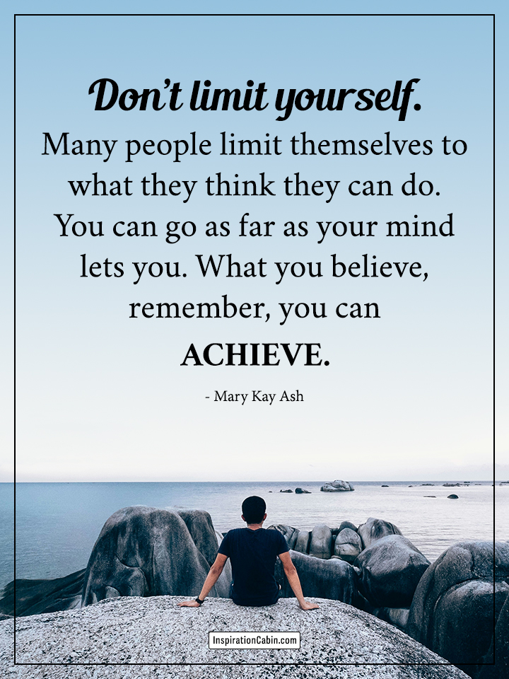 Don’t limit yourself. Many people limit themselves to what they think they can do. You can go as far as your mind lets you. What you believe, remember, you can achieve.