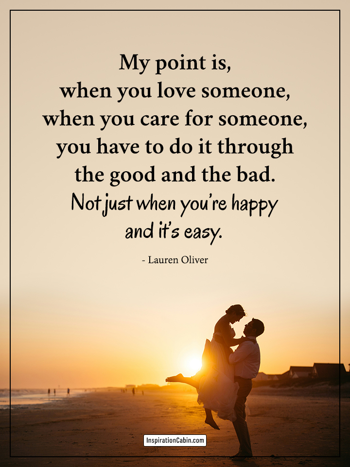 My point is, when you love someone, when you care for someone, you have to do it through the good and the bad. Not just when you’re happy and it’s easy.