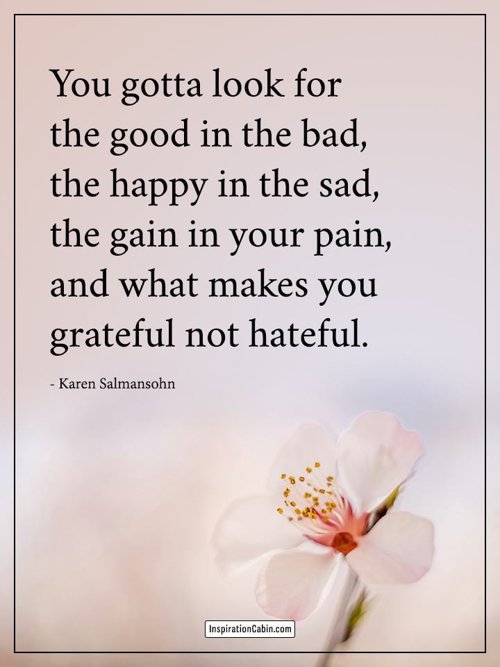 You gotta look for the good in the bad, the happy in the sad, the gain in your pain, and what makes you grateful not hateful.